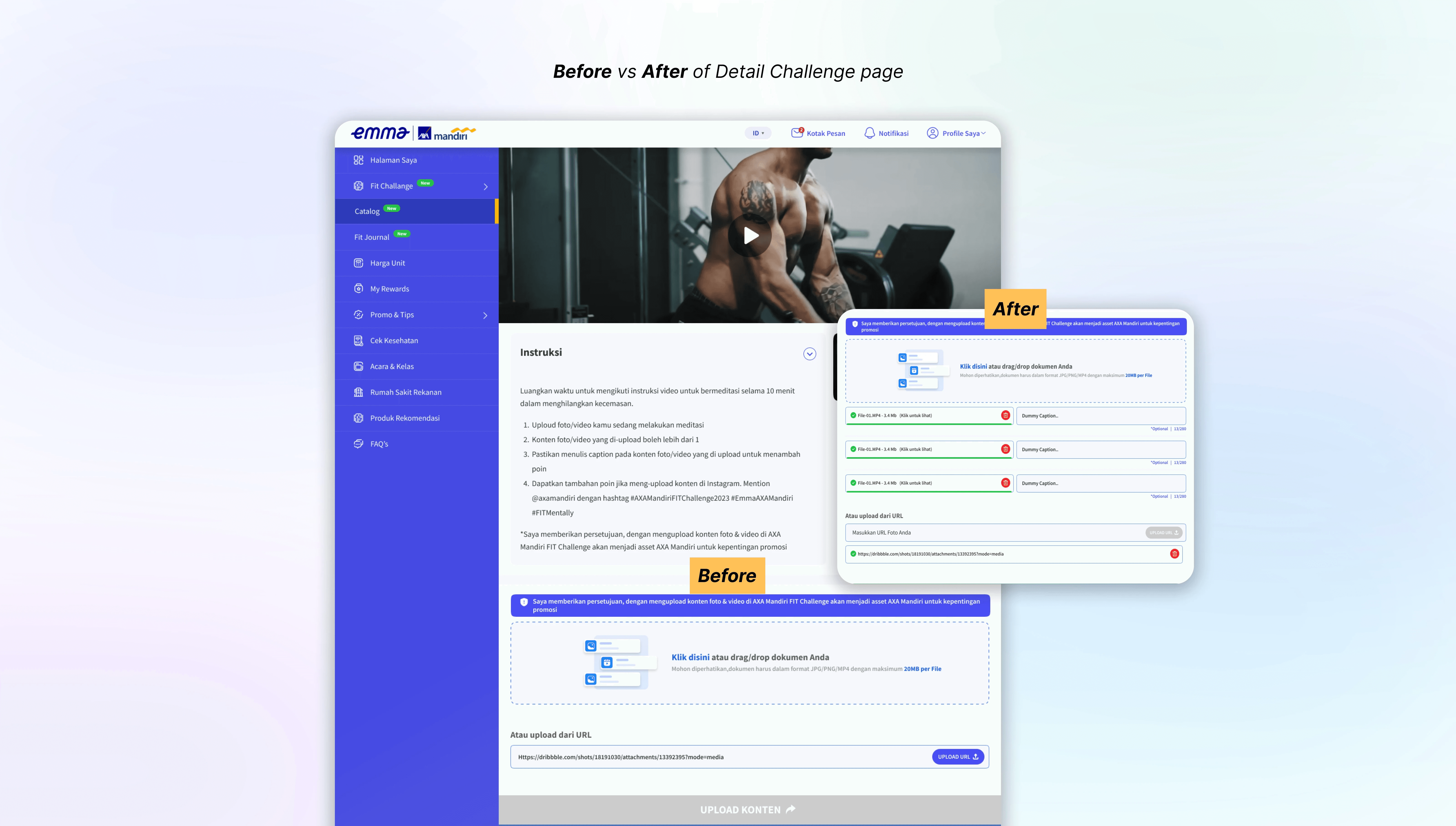 The previous FIT Challenge is not available on the Emma AXA Mandiri platform. The participants who want to join the FIT Challenge, need to go to the microsite and there is no activity on the EMMA AXA Mandiri, so we need to create the feature from scratch.