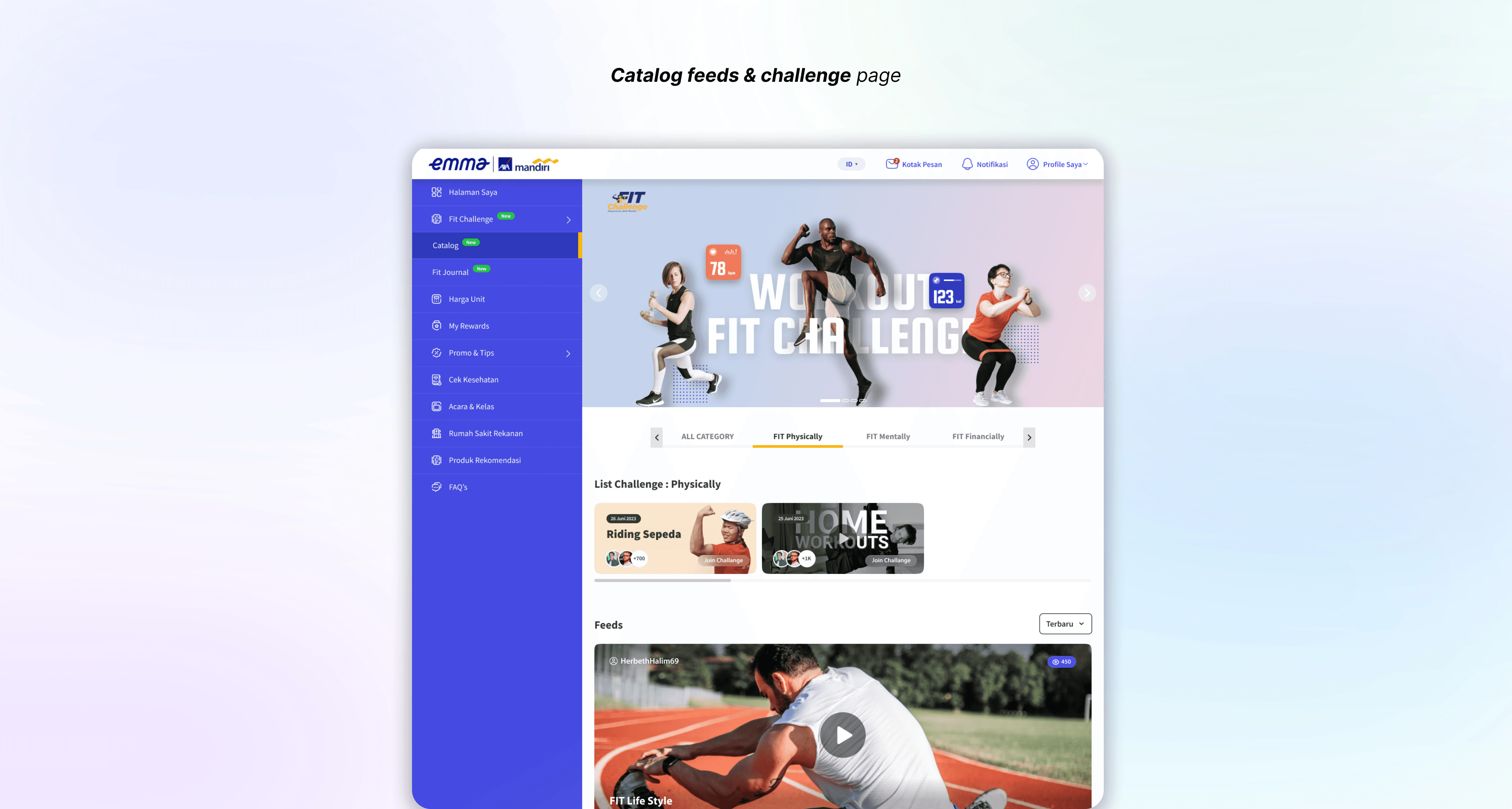 Provide "FIT Catalog", contain with List of Challenges and Feed.