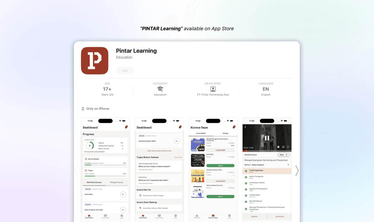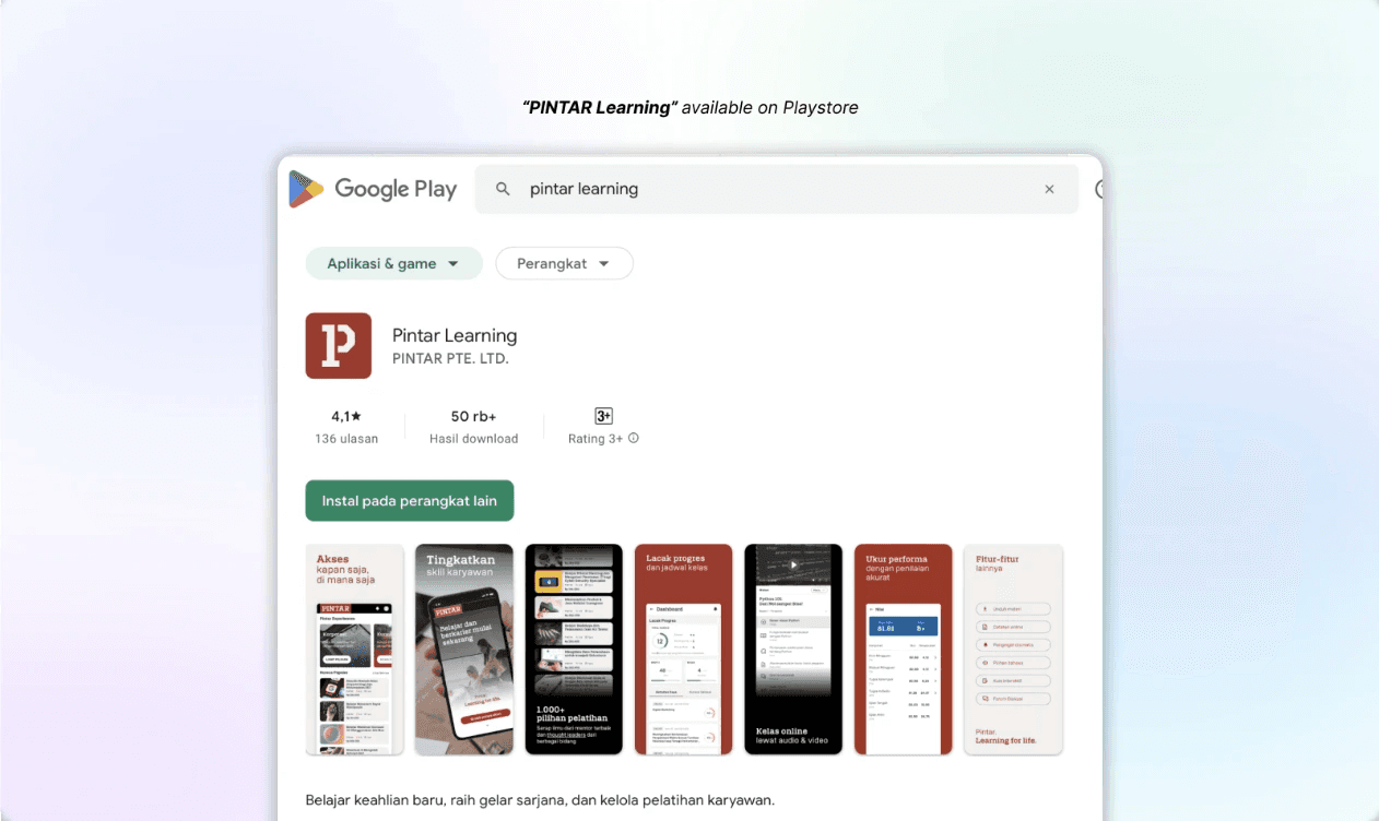 PINTAR is an innovative e-learning platform that has been helping learners through a desktop application. With a growing user base, PINTAR identified a need to enhance accessibility and engagement by expanding to a mobile platform. The "PINTAR Learning" mobile app now allows learners to access resources on-the-go, aligning with trends toward mobile learning and microlearning.